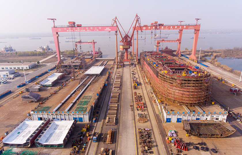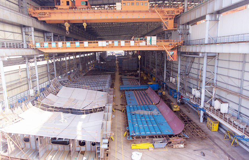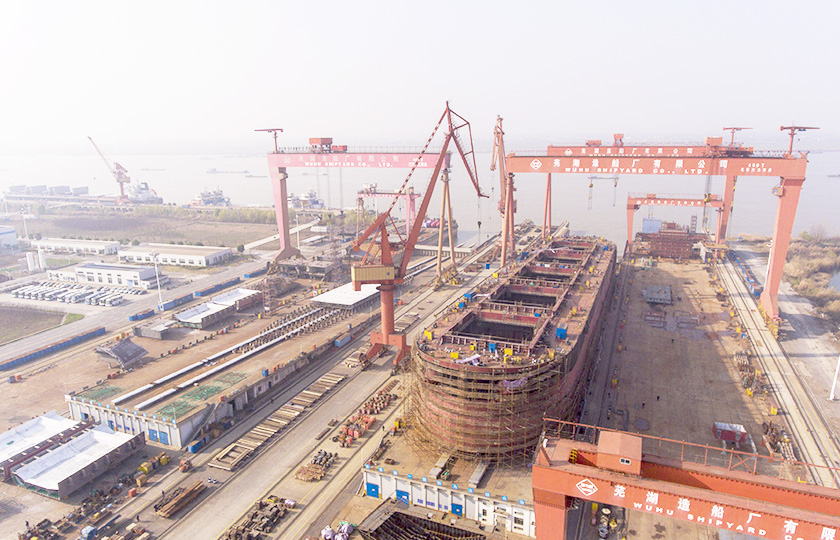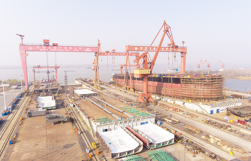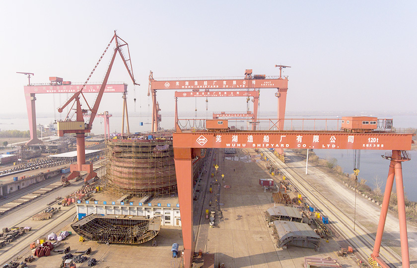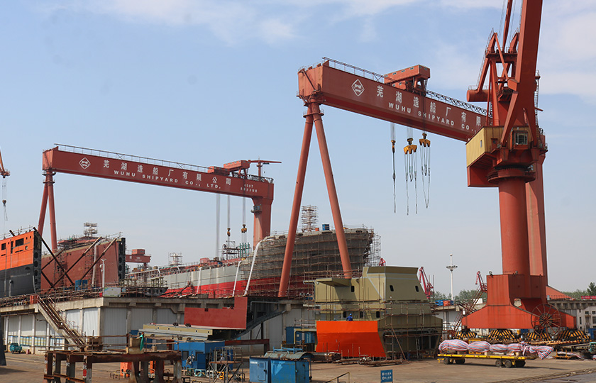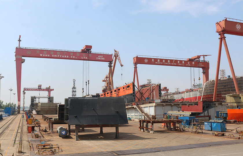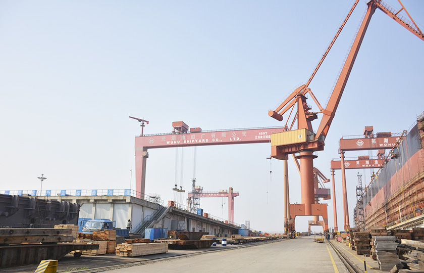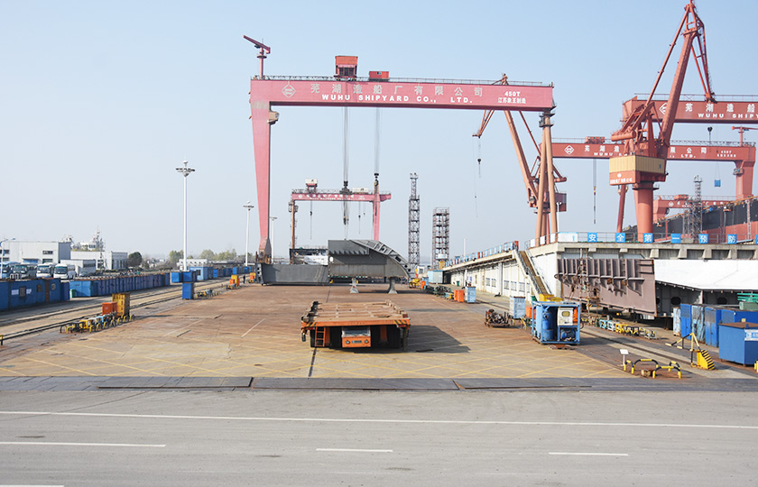公司蕪湖本部坐落于安徽省蕪湖市三山經(jīng)濟開發(fā)區(qū),占地面積121.07萬平方米,岸線總長1355米,配備2座80000噸級船臺和1座740米舾裝碼頭;威海基地占地680畝,年產(chǎn)值可達50億元;南通基地占地約3000畝,擁有兩座30萬噸干船塢,總岸線約1200多米,設(shè)施先進,規(guī)模顯著,三大基地協(xié)同聯(lián)動,共同構(gòu)建起國內(nèi)規(guī)模領(lǐng)先、設(shè)備一流、布局完善的現(xiàn)代化造船產(chǎn)業(yè)平臺。